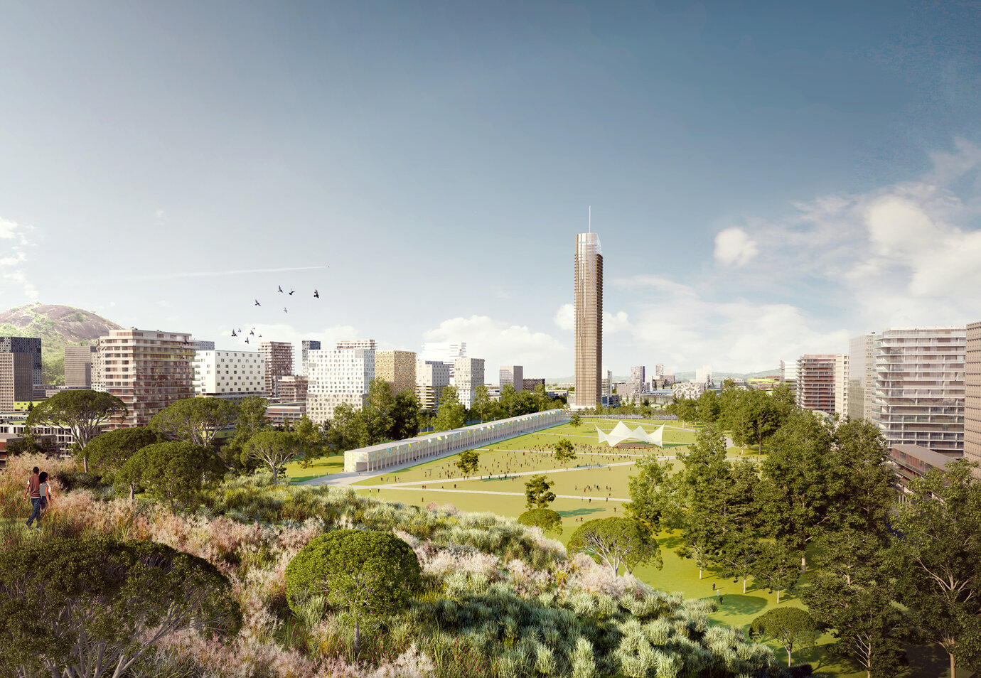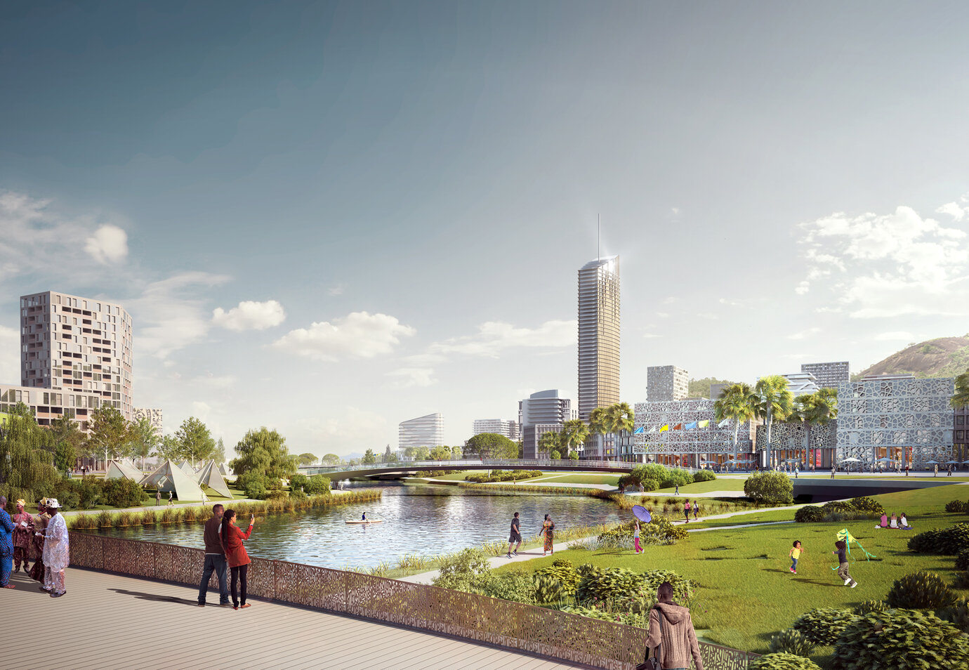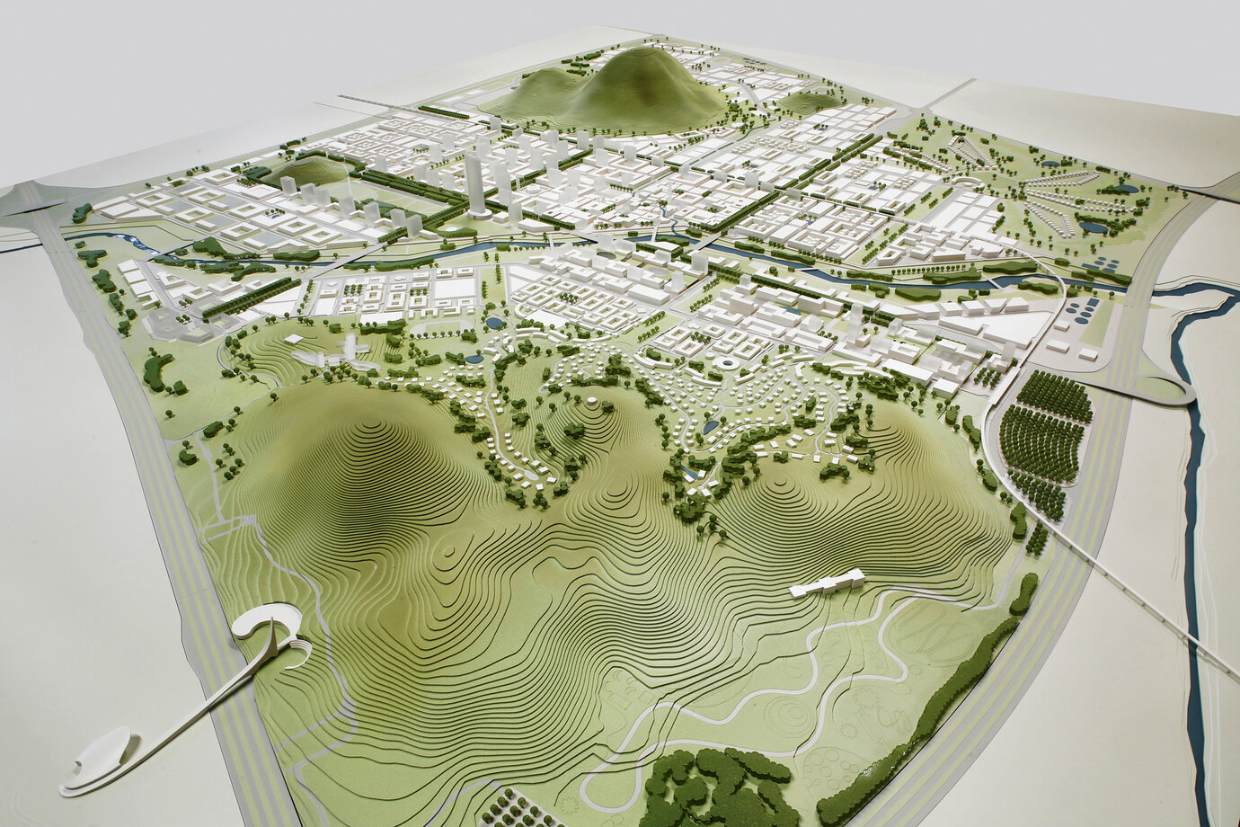 The Government of the Republic of Nigeria is planning a new city with a self-sustaining sub center in Nigeria's Federal Capital Territory, called ‘Centenary City'. A site of approx. 13 km², located in close proximity to the international airport and only 25 km away from Abuja's CBD, has been set aside for this purpose. The city shall not only serve about 200,000 people - residents, employees and visitors alike -, but also combine sustainable urban design principles with progressive land uses resulting in an urban form that respects its surrounding natural landscape and is socially and economically viable. Furthermore, Centenary City shall be awarded a special tax status, which will support its role as the new financial center of Nigeria. The AS+P master plan envisages dense central areas set within a system of windmill-like arterial roads, that formulated a central core and heart of the new district. In combination with an iconic skyline it seeks to responsibly act as a counterpart to the impressive natural topography of the site. The overall city layout of grid-iron streets was also a formal reference to the central areas of Abuja, and thus to its idea as a city. In addition, baseline calculations for all aspects of integrated sustainable urban planning - functional diversity, walkability and sustainable transportation, as well as environmental aspects, blue-green infrastructure, energy demand and waste management - were produced and verified. During this process, renowned international experts gave valuable insight into the technical aspects of environmental urban planning. Efficient energy solutions as well as sustainable water and waste management, could thus be incorporated into the overall layout of the district and its land use plan. As such, the master plan is able to set the course for an all-inclusive city with the best and most advanced infrastructure and building design standard in the country.