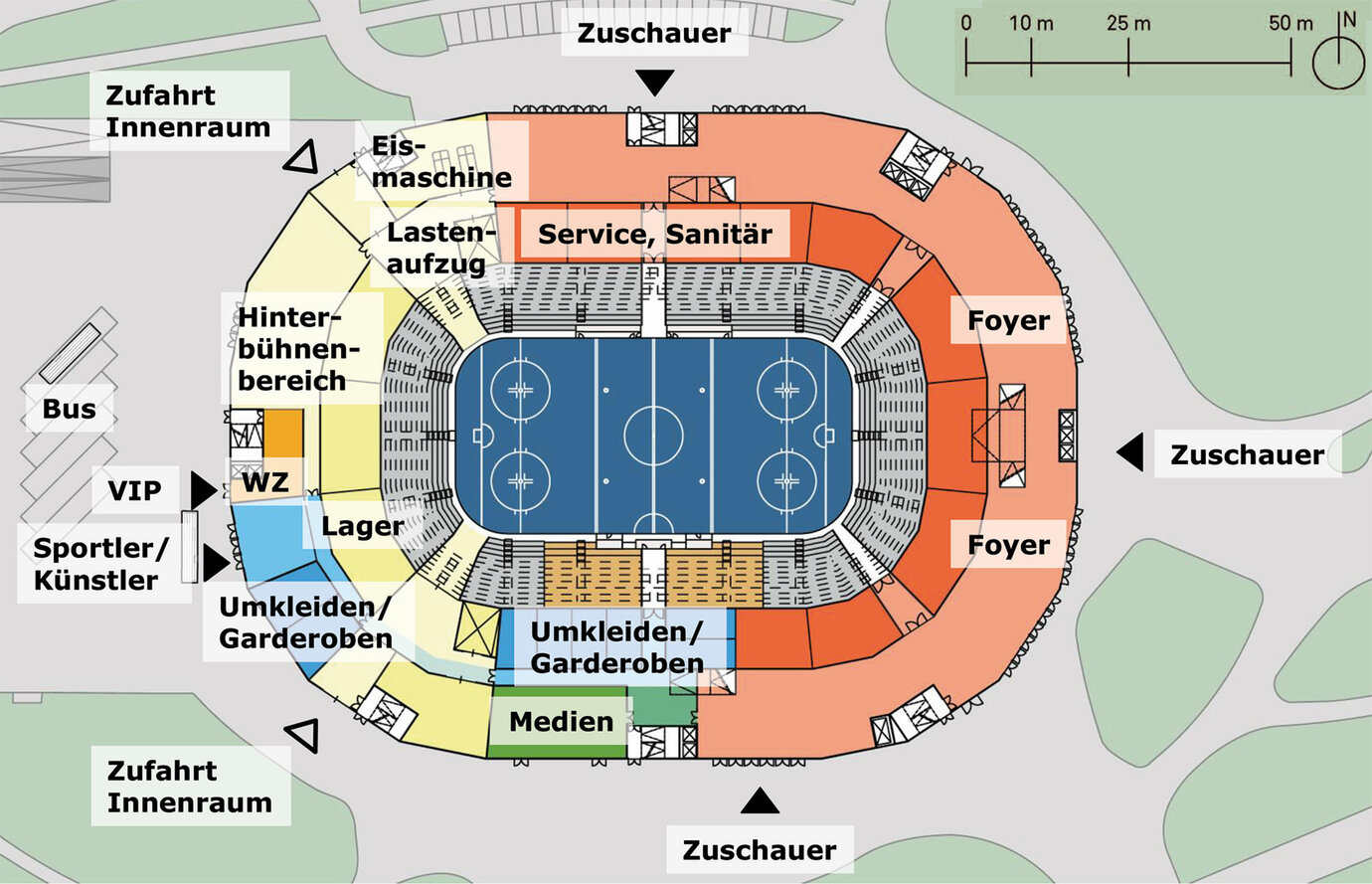 Funktionaler Planungsansatz für eine multifunktionale Veranstaltungshalle (Schwerpunkt Eishockey/Basketball) mit einem Fassungsvermögen von 6.000 bis 8.000 Zuschauern