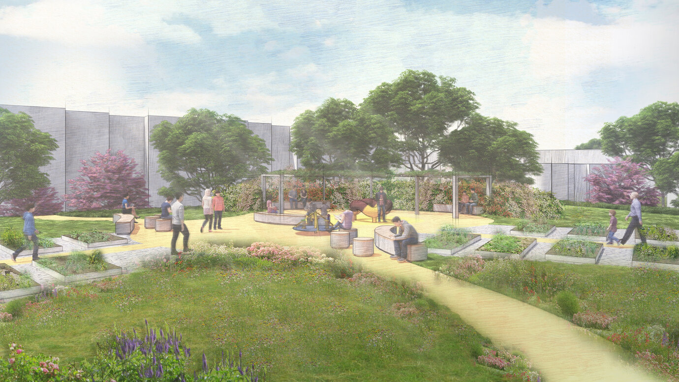 Central play and recreation area on the existing park deck