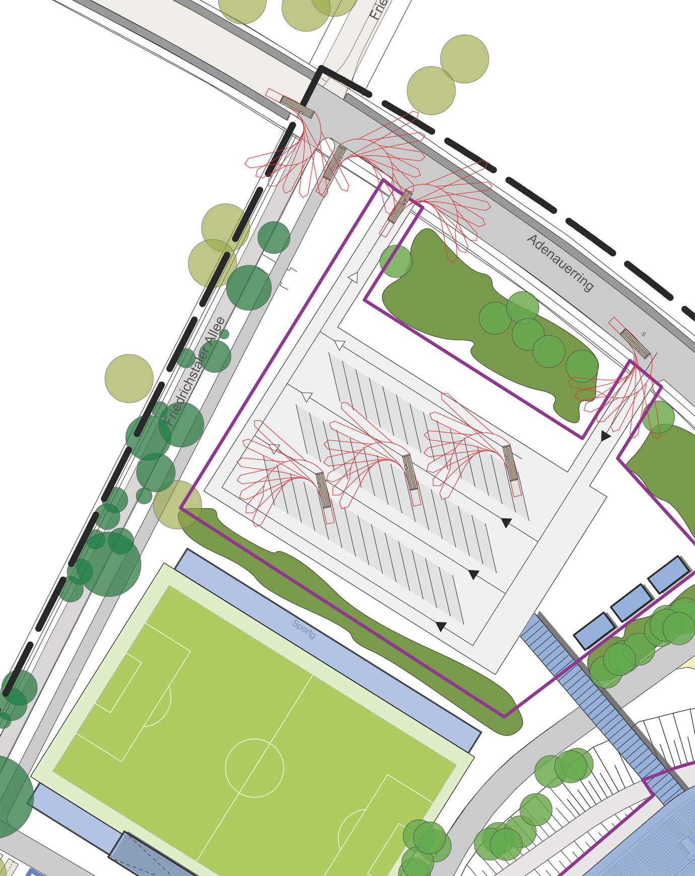 Owned by the City of Karlsruhe, the Wildpark Stadium only to a limited extent meets the functional and business requirements associated with staging German Football Association events today. For this reason, the City of Karlsruhe, with the agreement of Karlsruher Sport-Club (KSC), took the decision to completely rebuild the existing stadium. To ensure that the new stadium is holistically designed in a functional and meaningful way, AS+P was commissioned to draw up an overarching masterplan. The masterplan identifies and evaluates the existing functional context on site as well as in terms of how it will interact with local residential, transport, design, and open space needs. The aim is for all the parties involved to adopt the schematic masterplan by consensus as an informal planning basis, thus ruling out, or aligning opposing planning intentions or conflicts of interest at an early stage of the project. Given this scenario, with the agreement of KSC, in future the main user of the stadium, the City of Karlsruhe authorities were involved in the elaboration of the masterplan. The masterplan and design plan are important elements of the Letter of Intent pertaining to the further course of the construction project concluded on April 15, 2015 between the City of Karlsruhe and Karlsruher SC.
