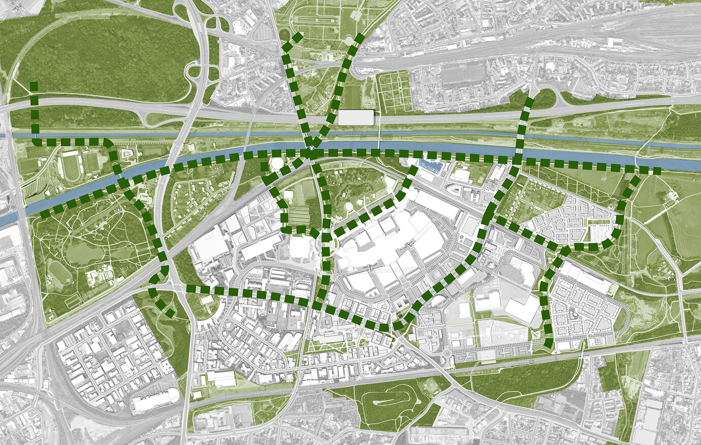 Städtebaulicher Masterplan für das Quartier "Neue Mitte Oberhausen" rund um das "Centro", Deutschlands größter Shopping Mall. Ein Schwerpunkt der Planung war die Neupositionierung des Stadtteils, u. a. durch funktionale Ergänzungen (Wohnen)