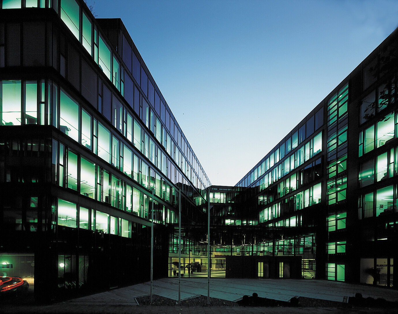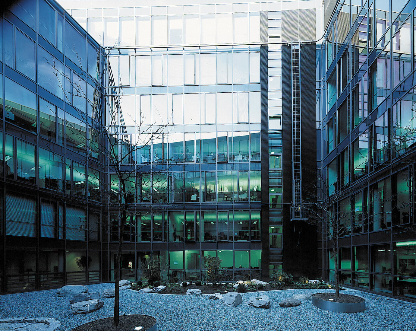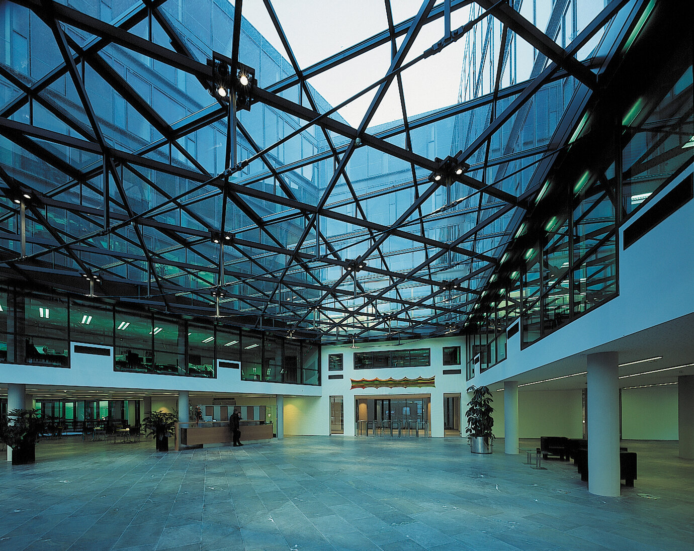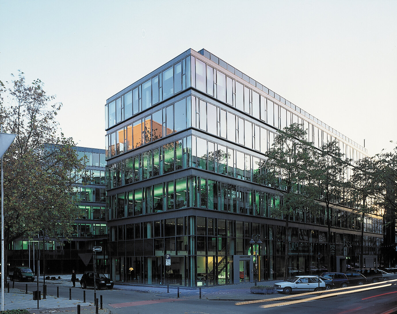 The terms inviting and elegant characterize best the new administration building of the Westdeutsche ImmobilienBank and Landesbank Rheinland-Pfalz in the center of Mainz. In 1997 AS+P's design prevailed against its competitors in a closed competition. The building has six full floors and one staggered floor and when seen from above, its footprint resembles the number 9. The structure distinguishes itself through its adaptation of the existing building lines of its neighbors and a façade, which is delicately transparent and weightless. But the building offers more than an elegant shape; its building equipment is interactive. It was important to the bank that the building would provide a maximum of flexibility for potential users while simultaneously embodying a first-rate address. Furthermore, the design was to be energy-saving and was to provide a maximum of natural lighting to create workplaces of the highest quality. The novel windows, which slide open along the façade, thereby ensuring draught-free ventilation and noise protection have become the technical highlight of the building and are unparalleled in size.