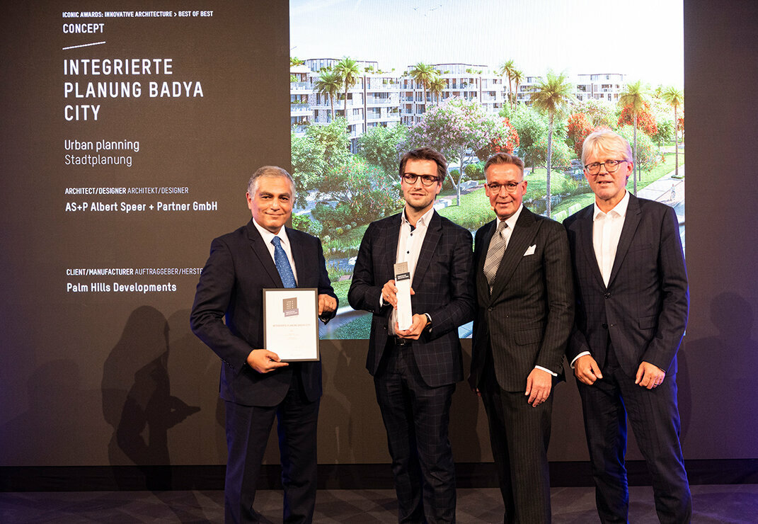 At the official prize-giving ceremony on Monday evening in Pinakothek der Moderne in Munich during Expo Real, the AS+P team received no less than two awards: “Best of Best” for “Integrated Planning of Badya City in Cairo, Egypt” and “Winner” for the new MHK European headquarters in Dreieich.