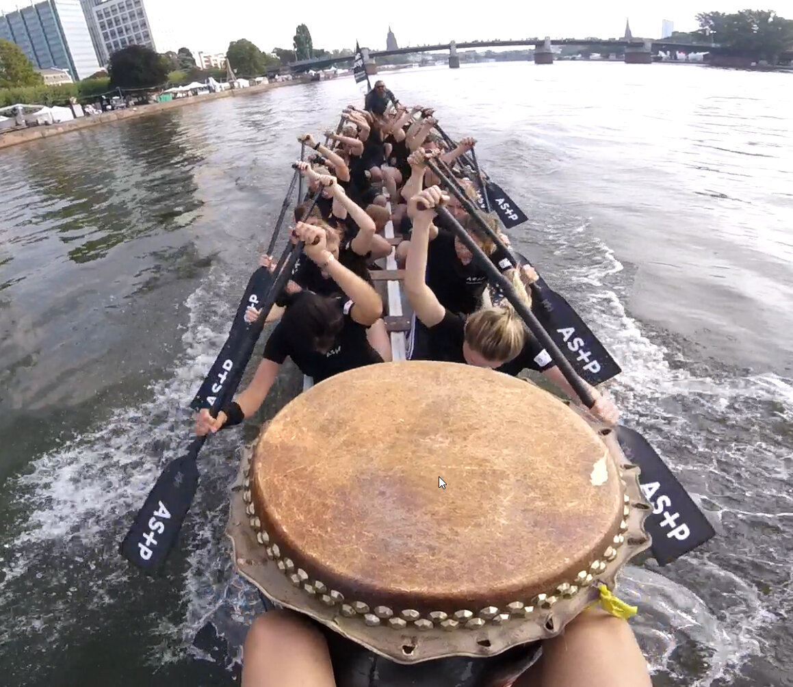 Die Rennstrecke des zweitältesten Drachenbootwettkampfs in Deutschland verläuft von der Untermainbrücke bis zum Holbeinsteg. Dieses Jahr nahmen insgesamt etwa 60 Teams in den Klassen Mixed-Fun, Open-Cup, Mixed, Mixed-Sport und Damen-Cup am Rennen teil. Jetzt heißt es für die Mannschaft: Warten auf den nächsten Sommer, dann wird wieder auf dem Main trainiert. Sport wird bei AS+P traditionell großgeschrieben, so nehmen die Mitarbeiter auch am J. P. Morgan Chase Challenge oder an Fußballturnieren teil oder profitieren von Angeboten wie JobRad, Fitness oder Yoga.