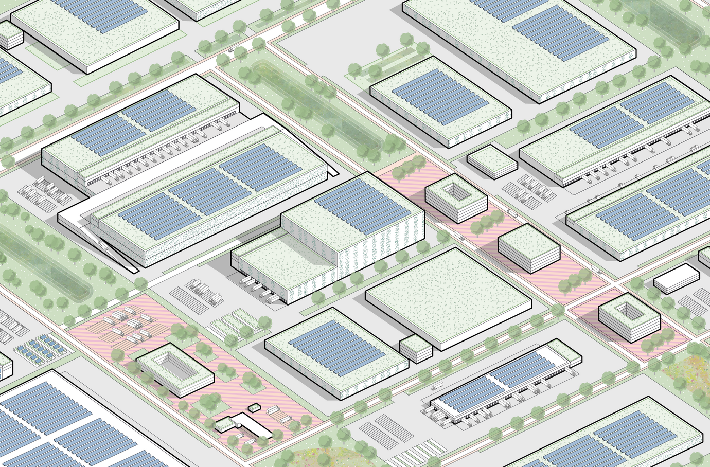 The efficient and sustainable logistics center © AS+P Albert Speer + Partner GmbH | Visualisation: AS+P