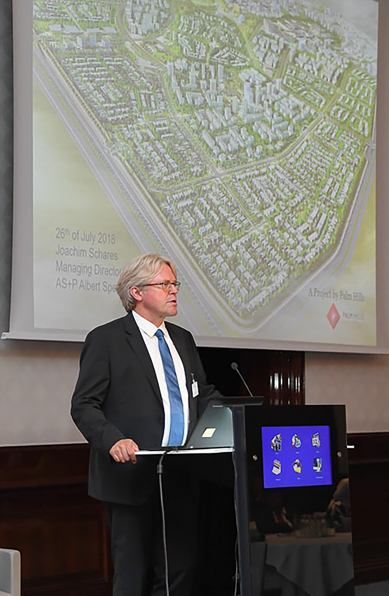 The Ghorfa fosters cooperation between Arab countries and the Federal Republic of Germany in the areas of trade, industry, finance and investments, but also promotes international understanding, and amongst other things through delegation trips and events attended by important figures seeks to create the best possible general conditions for German-Arabic business activities. For example, on the occasion of the 21st Arab-German Business Forum from June 25 to 27, renowned decision-makers from the realms of politics and business met in Berlin to further cultivate business relations between Germany and the Arab countries. Alongside guest of honor H. H. Sheikh Jaber Mubarak Al-Hamad Al-Sabah, Prime Minister of the State of Kuwait and representative of this year’s partner country, other speakers at the opening included patron Peter Altmaier, the German Federal Minister for Economic Affairs and Energy. In the panel discussion “Infrastructure Megaprojects: Government as an Enabler for Inclusive Growth” AS+P Managing Director Joachim Schares explained, using Badya City as an example, how interdisciplinary collaboration, integrated modular systems and the early deployment of digital tools can contribute to the creation of sustainable, user-oriented smart cities and enable rapid economic planning and construction processes. AS+P worked with an interdisciplinary team in planning the 1,260-hectare large development Badya City for Palm Hills Developments as part of the strategic urban expansion zone of Cairo.