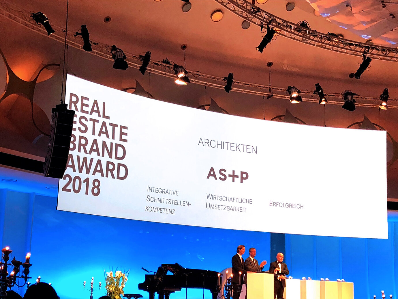 As a brand, AS+P stands out in particular for “integrative interface expertise” and “economic realizability”. These and other evaluation criteria were honored with the rating “Successful”. For the ninth time since 2009, the European Real Estate Brand Institute (in what is the largest empirical brand value study ever in the real estate industry) for the first time examined more than 1,400 corporate brands in 30 studies, and in this context polled over 94,000 sector experts in 47 European markets. The strongest brands received the REAL ESTATE BRAND AWARD 2018 for their positioning and brand work.
