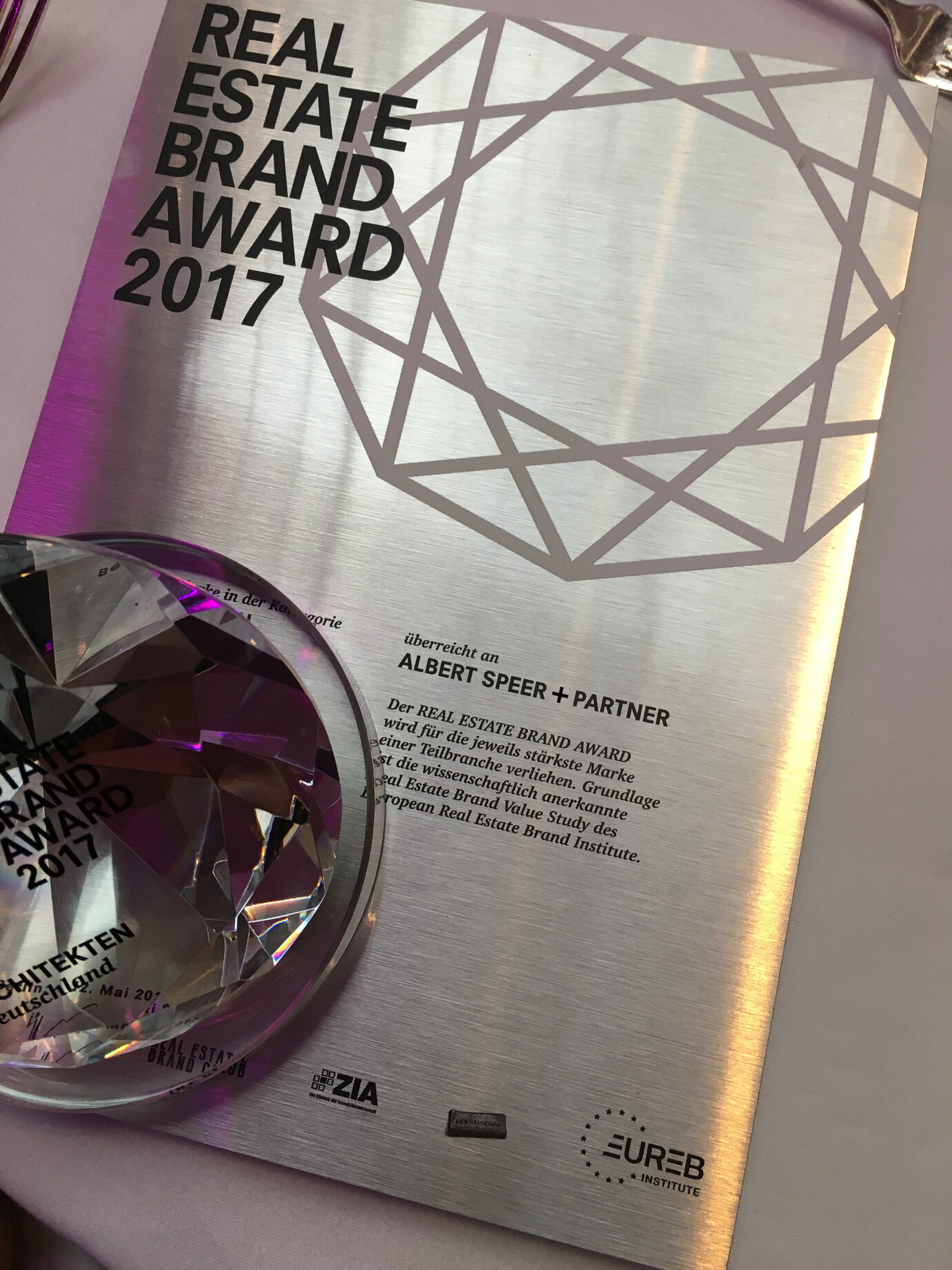 According to the Brand Value Study 2017 by the European Real Estate Brand Institute, the Frankfurt-based company again earns the highest brand value of the architecture firms in the German market and therefore received one of the honorable “diamonds” in Berlin, on 12th of May 2017.