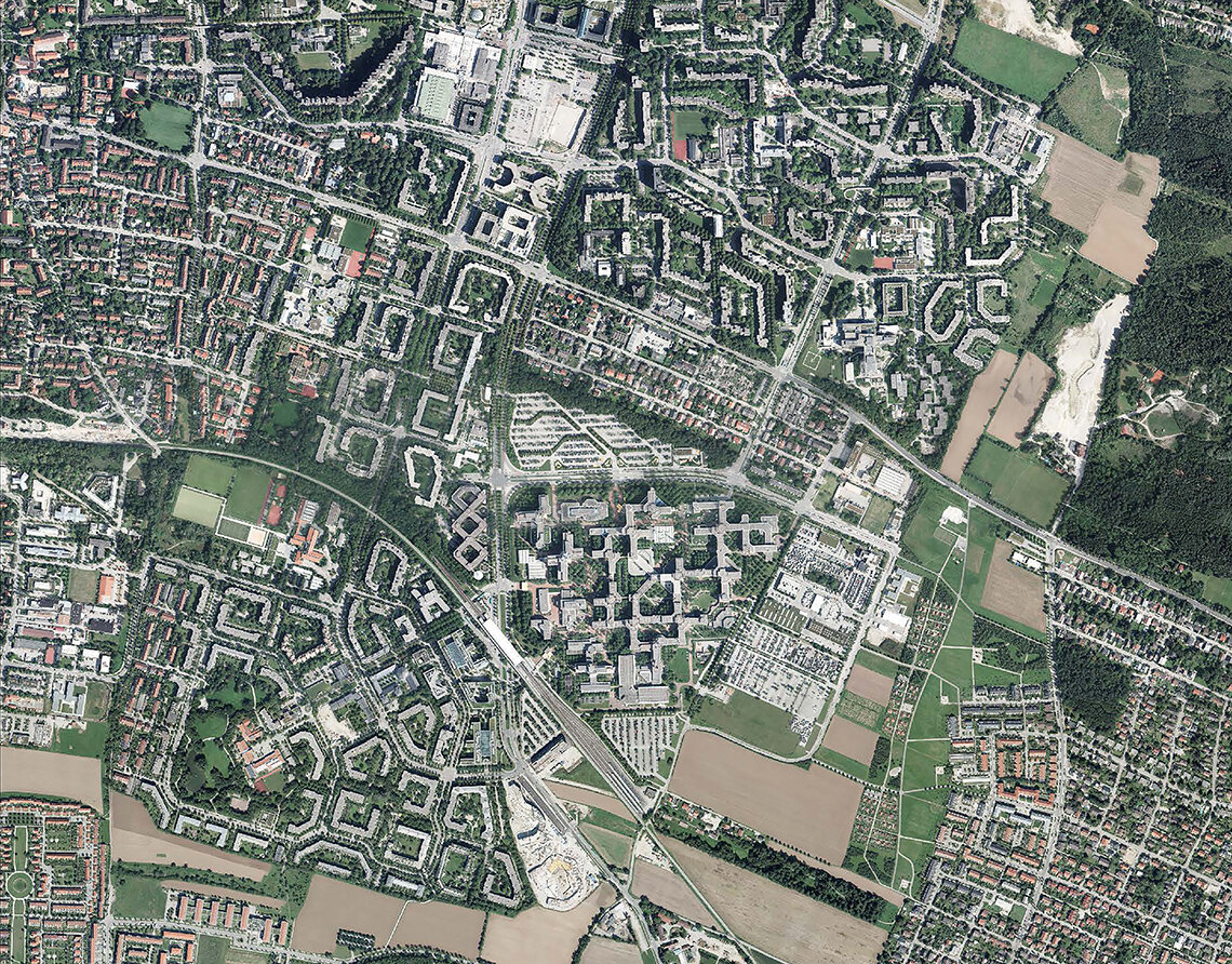 Air view Neuperlach with „Car parking north“ in the middle © Landeshauptstadt München