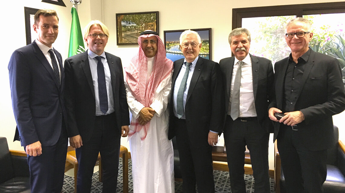 At the end of November Professor Speer was accompanied by managing directors and employees of AS+P on a visit to the capital of the Kingdom of Saudi Arabia. On the agenda were meetings with the Lord Mayor of the capital, His Excellency Ibrahim Al Sultan, and His Excellency the German Ambassador Dieter W. Haller, as well as appointments with various different companies.