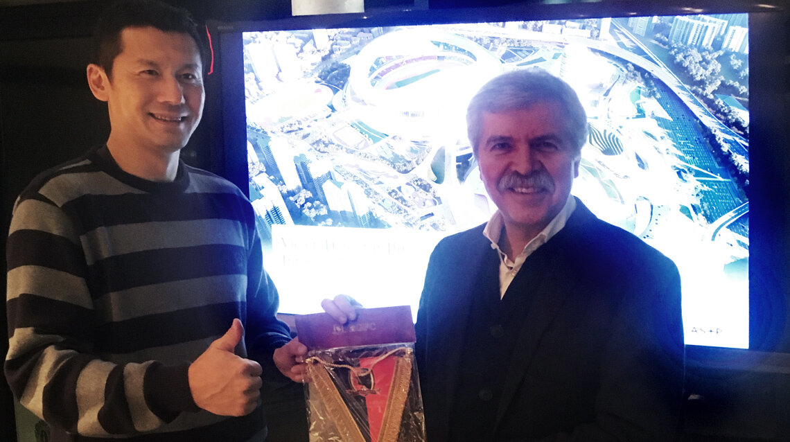 During the visit to the Frankfurt club by a Chinese delegation headed by Yang Chen, a soccer legend in both Germany and China, Friedbert Greif, managing partner at AS+P, presented the company’s expertise in planning sports venues in Germany, China, and the Arab countries.