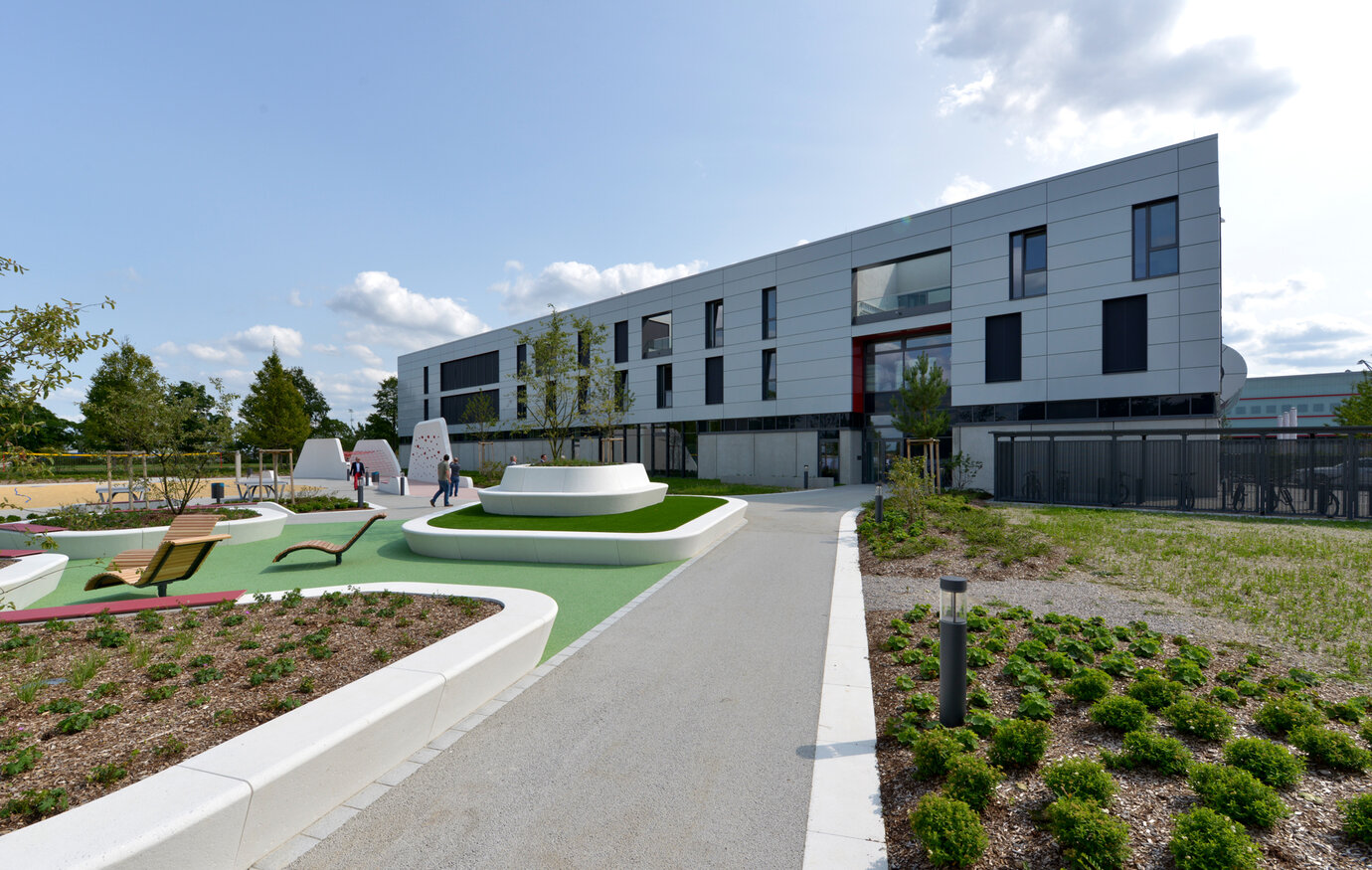 The new FC Bayern Campus involved pure construction costs of 70 million Euros and took 22 months to build; it has been in operation since August 1, 2017. In 2014, AS+P was commissioned to plan the campus. The grounds are 30 hectares in size and now feature a sports hall for basketball, handball and table tennis, eight football pitches for teams from the Under-9s to the Under-19s as well as for the women’s and girl’s teams, and a 2,500-spectator stadium where the Under-17s and the Under-19s play their national league games. The Allianz FC Bayern Academy, the academy building on the campus houses not only the offices of the coaches and their staff but also 35 apartments for talented players who do not come from metropolitan Munich.