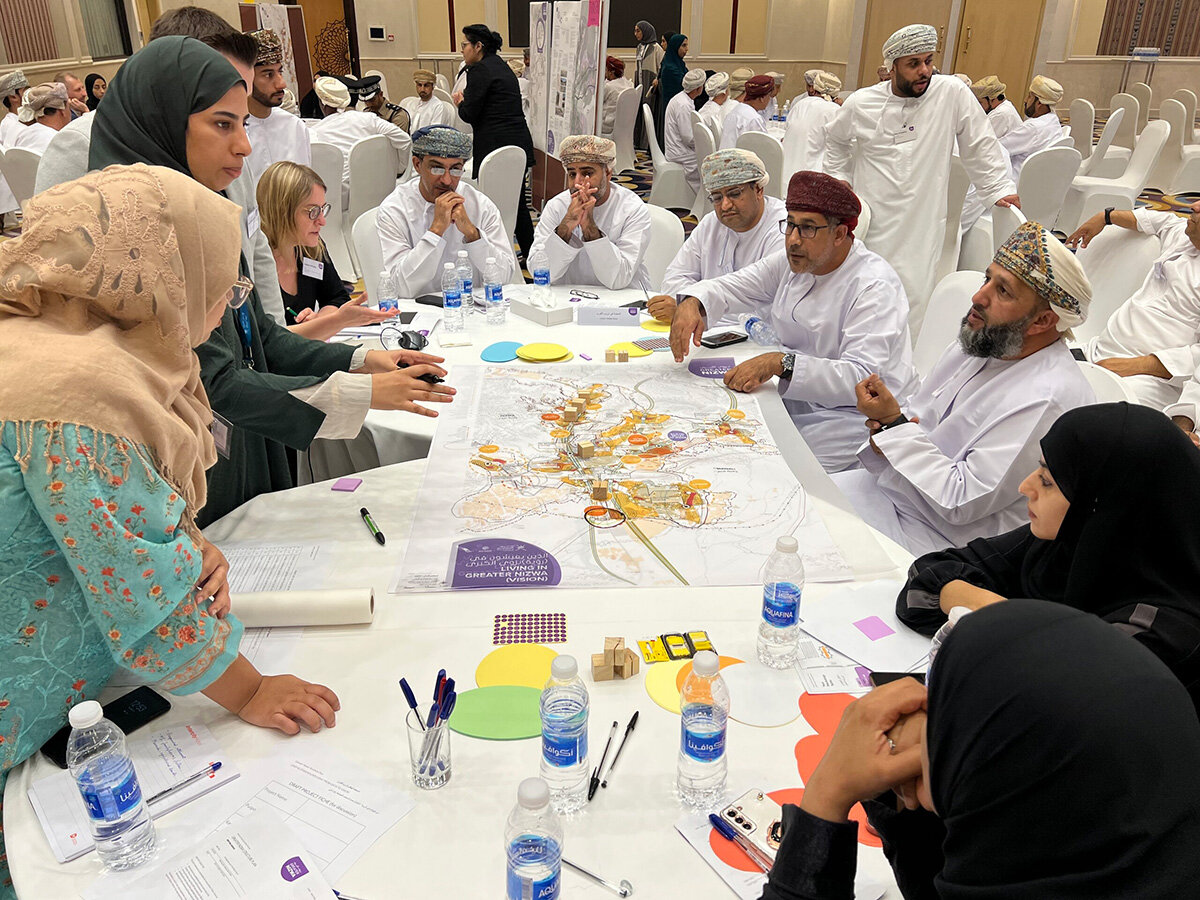 There was great interest in the one-day event at the IntercityHotel in Nizwa: around 160 participants discussed the approaches presented by the AS+P team for the future urban development of the greater Nizwa area and debated the priorities set in urban and open space planning, economy, mobility, infrastructure, cultural heritage, and history at a variety of themed tables. "The event was a very good opportunity for everyone involved to discuss the project's strategy and vision, and we are proud to have played a leading role in this great project with our interdisciplinary team," said Stefanie Wladika (Project Manager) and Jürgen Häpp (Associated Partner), summarizing the positive outcome for AS+P.