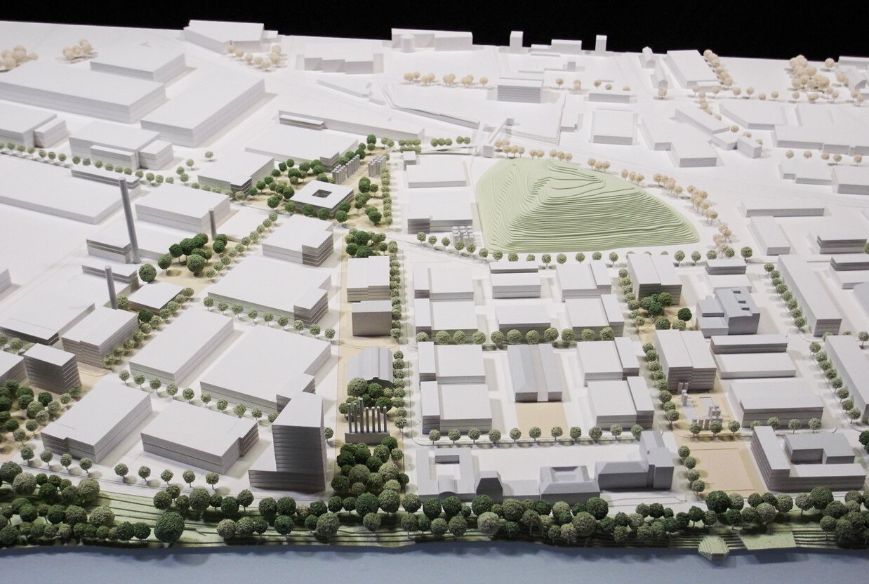 With a planned area of around 70 hectares, Frankfurt Westside is one of the largest brownfield developments to be implemented in Frankfurt in recent years. Here: extract from a photo of the model © AS+P Albert Speer + Partner GmbH, model: GBM Modellbau GmbH