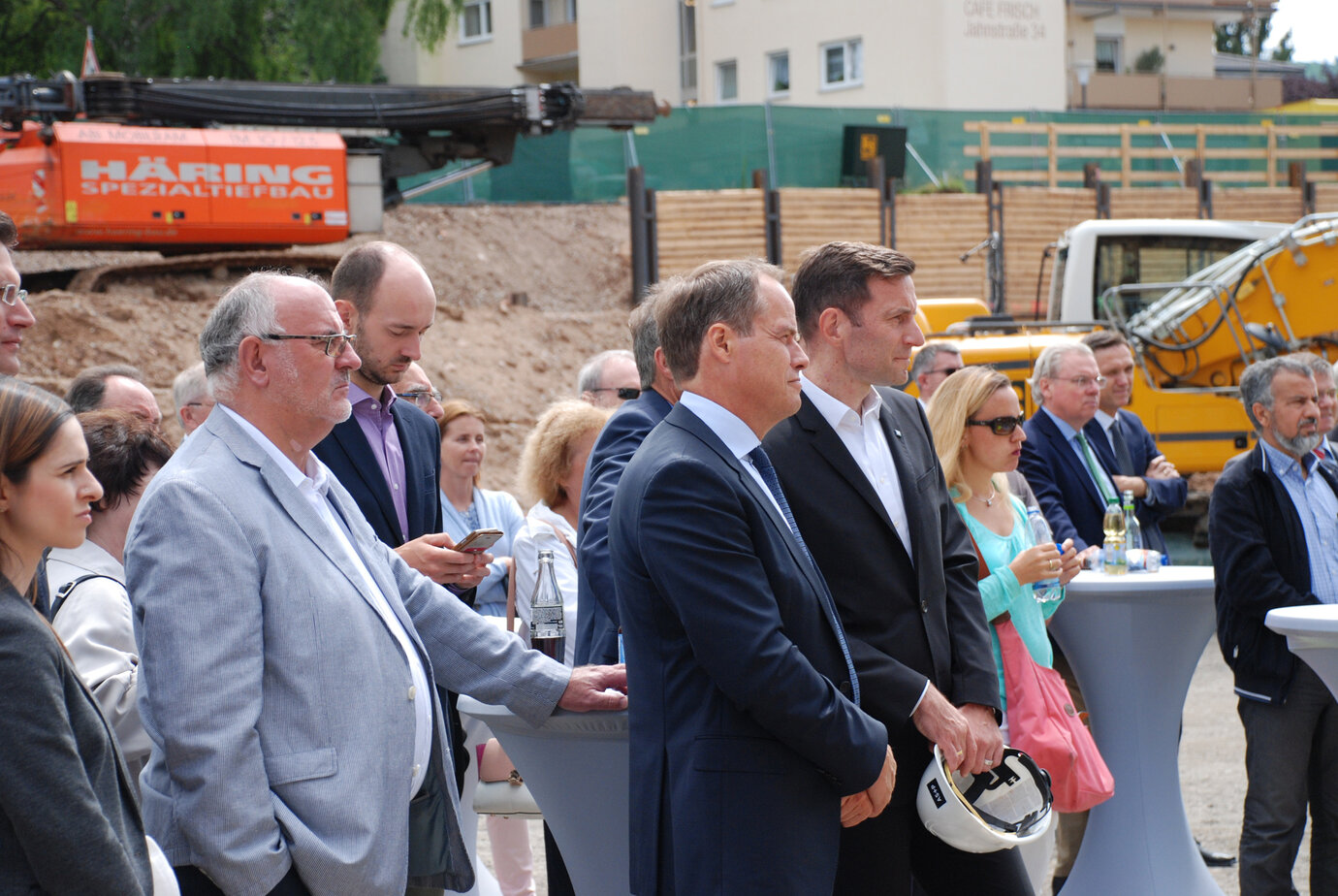 Some 90 guests attended, to see how the construction work is progressing, and witness CEO Dr. Bernd Scheifele and CFO Dr. Lorenz Näger, as well Mayor Prof. Eckart Würzner and Axel Bienhaus, managing partner at AS+P, seal the time capsule placed inside the foundation stone.