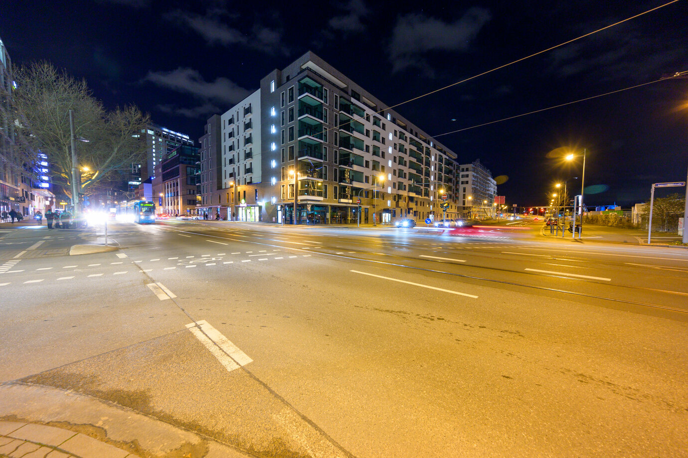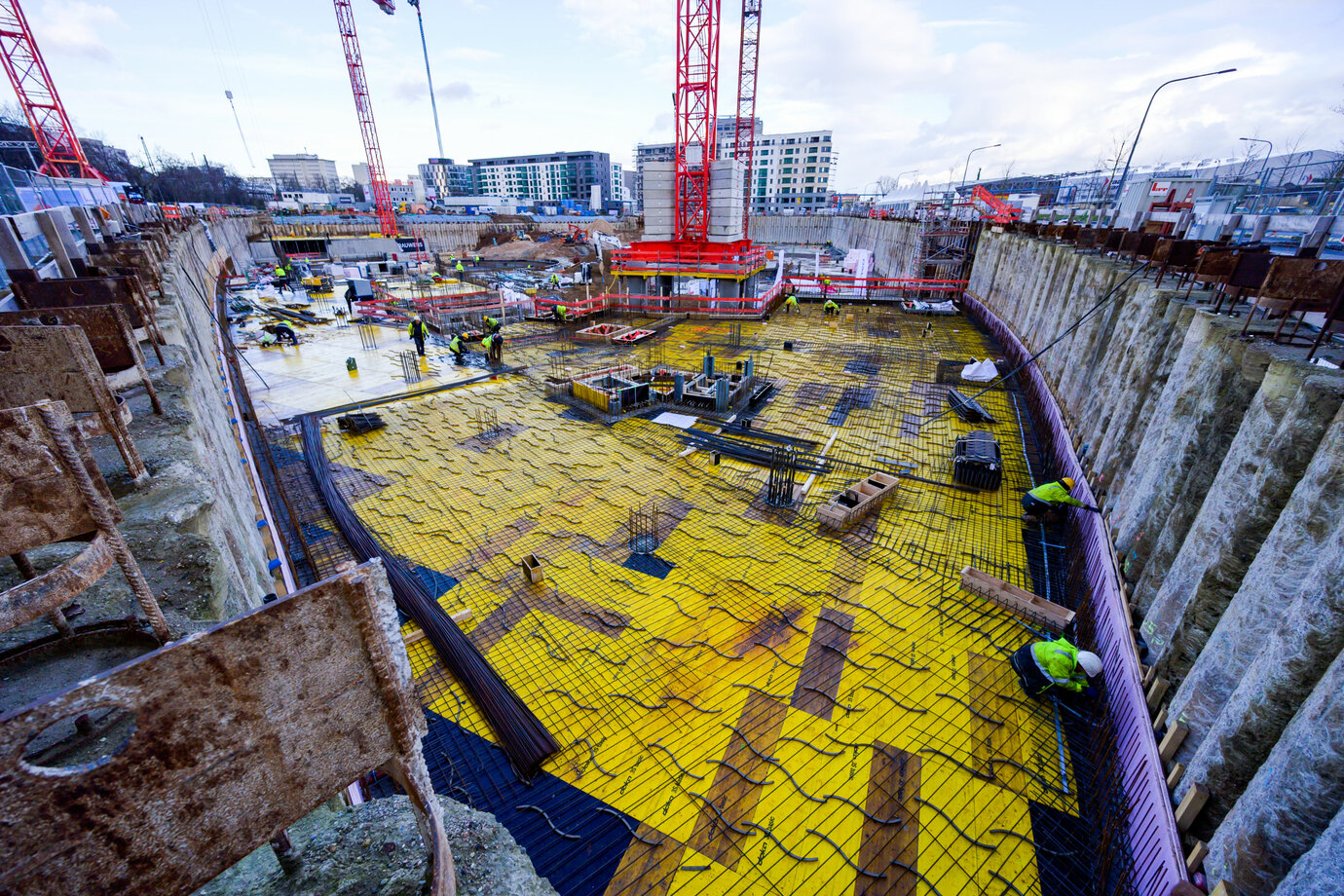 The excavation pit for the Scandic Hotel with the residential building for building plot North (right) and for building plot South (left). Photo © B&L, Darlison