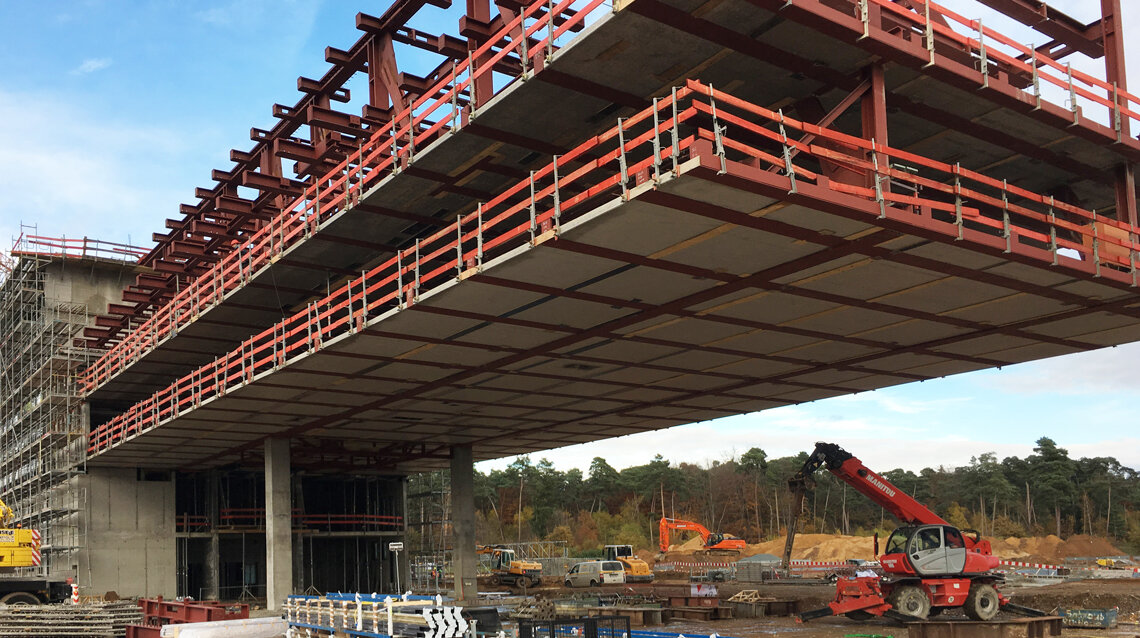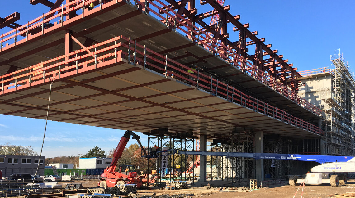 On Frankfurter Strasse on the northern outskirts of Dreieich – Sprendlingen, two of the six stories of the new MHK Group European headquarters are already visible.